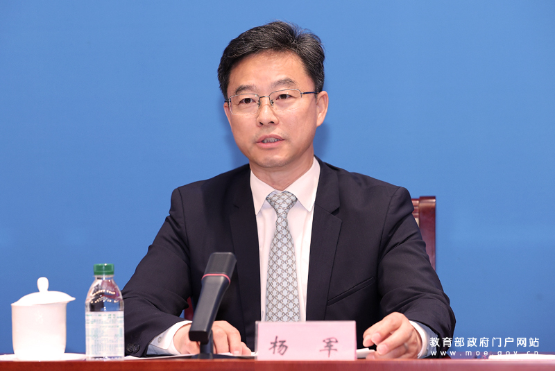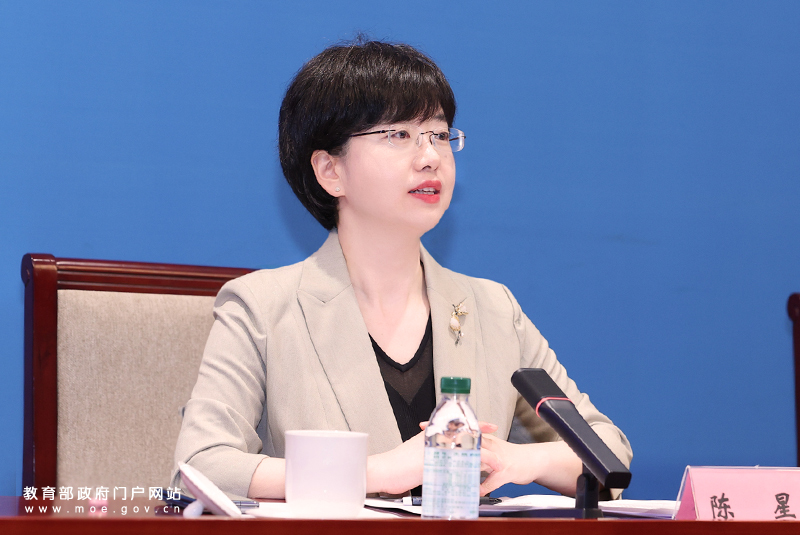 教育部辦公廳副主任、新聞辦主任陳星主持發(fā)布會。(中國教育報記者 張勁松/攝)