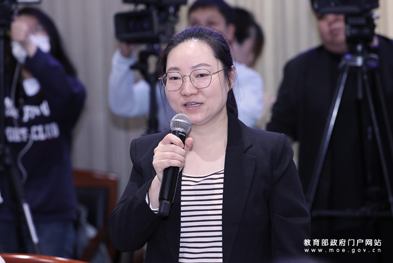 澎湃新聞記者提問。(中國教育報記者 張勁松/攝)