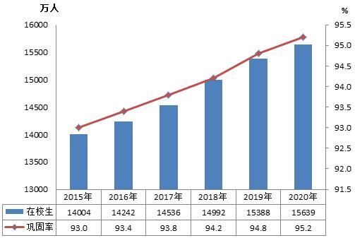 圖3 “十三五”時期義務(wù)教育在校生和鞏固率