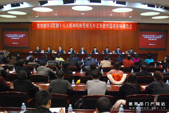 袁貴仁指出,黨的十八大報告將教育放在改善民生和加強社會建設(shè)之首,明確提出了均衡發(fā)展九年義務(wù)教育,合理配置教育資源,大力促進教育公平等下一階段教育事業(yè)科學(xué)發(fā)展的戰(zhàn)略性目標(biāo)和任務(wù)。教育戰(zhàn)線當(dāng)前和今后一個時期的首要政治任務(wù),就是緊密結(jié)合實際,認真學(xué)習(xí)宣傳、全面貫徹落實黨的十八大精神。組織均衡發(fā)展義務(wù)教育巡講團,宣傳推廣典型經(jīng)驗,是學(xué)習(xí)宣傳貫徹落實黨的十八大精神的具體舉措,對于把教育系統(tǒng)學(xué)習(xí)宣傳貫徹黨的十八大精神不斷引向深入、進一步推進義務(wù)教育均衡發(fā)展具有示范帶動意義。
