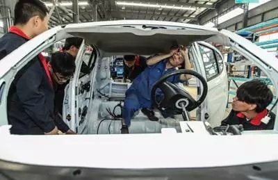 學(xué)生們?cè)谄嚳傃b車間完成汽車組裝
