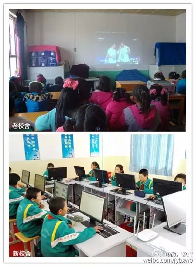 打柴溝鎮(zhèn)上河?xùn)|小學(xué)新舊校舍對(duì)比圖