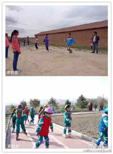 在回甘肅天祝藏族自治縣縣城的路上,采訪(fǎng)團(tuán)看到打柴溝鎮(zhèn)上河?xùn)|小學(xué)的學(xué)生正在操場(chǎng)上玩輪滑。校長(zhǎng)萬(wàn)毓成說(shuō),這所小學(xué)的校舍也是今年新建的。小編特意找學(xué)校要來(lái)老校舍的照片,具體有啥變化,比一比就知道。