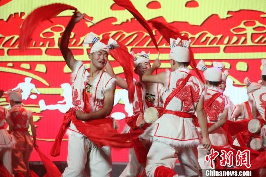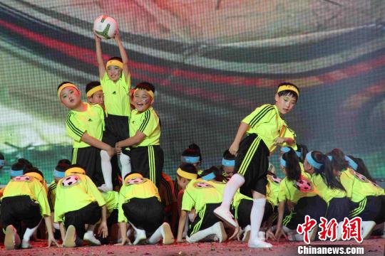 圖為延安育才紅軍小學(xué)、延安創(chuàng)新實(shí)驗(yàn)小學(xué)學(xué)生表演的舞蹈《生命之杯》。 張一辰 攝