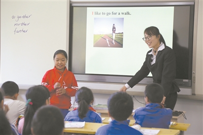 阜平縣龍泉關(guān)鎮(zhèn)中心學(xué)校教師高艷艷正在上英語(yǔ)課。(楊俊芳/攝)
