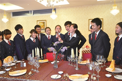 西餐服務(wù)實(shí)訓(xùn)教學(xué) 為資料圖片,圖片中的學(xué)生均為貴州清鎮(zhèn)職教城學(xué)生。
