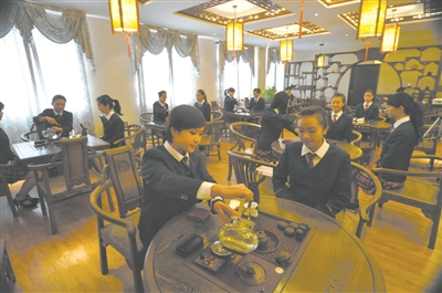 茶藝實(shí)訓(xùn) 為資料圖片,圖片中的學(xué)生均為貴州清鎮(zhèn)職教城學(xué)生。