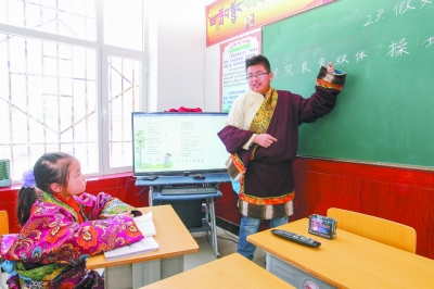 “在高海拔的教學(xué)點,能達到這樣的教學(xué)條件,那是我們以前想都不敢想的。”藏語老師張拉毛東智告訴記者。
