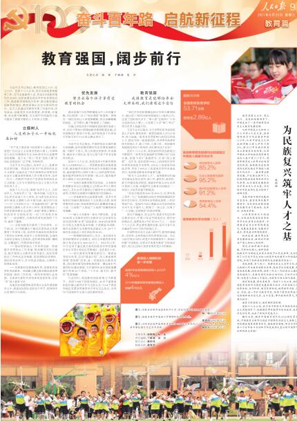 習(xí)近平總書記指出,教育是國之大計、黨之大計。黨的十八大以來,黨中央高度重視教育工作,召開全國教育大會,印發(fā)《中國教育現(xiàn)代化2035》,全面加強(qiáng)各級各類學(xué)校思想政治工作,推進(jìn)教育領(lǐng)域綜合改革,強(qiáng)化教材建設(shè)國家事權(quán)地位,教育面貌正在發(fā)生格局性變化。億萬人民通過受教育實(shí)現(xiàn)了完善自身、改變命運(yùn)、創(chuàng)造美好生活的愿望,獲得感、幸福感、安全感不斷增強(qiáng),為實(shí)現(xiàn)中華民族偉大復(fù)興提供了源源不斷的人才和智力支撐。