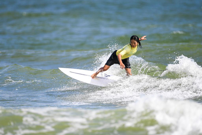 7月12日,第一屆全國學(xué)生(青年)運(yùn)動(dòng)會(huì)沖浪項(xiàng)目女子短板決賽在廣西北海市舉行。(新華社記者 曹祎銘/攝)