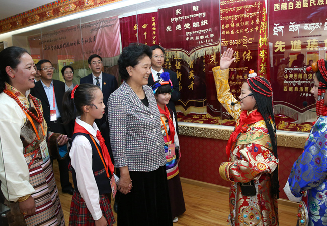 9月10日,中共中央政治局委員、國務(wù)院副總理劉延?xùn)|在西藏自治區(qū)昌都市看望中小學(xué)師生,與教師代表座談,并向全國廣大教師和教育工作者致以節(jié)日問候。這是劉延?xùn)|會見昌都市優(yōu)秀中小學(xué)教師代表。(新華社記者 龐興雷攝)