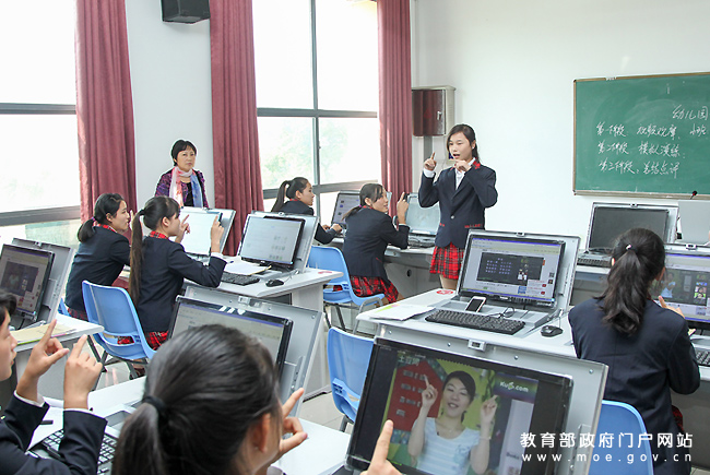 在河南省信陽航空服務(wù)學(xué)校,學(xué)前教育專業(yè)的學(xué)生們正在學(xué)習(xí)幼教課程。(中國教育報(bào)記者 張勁松攝)