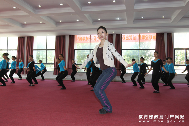 學(xué)生們正在上形體課。(中國教育報(bào)記者 張勁松攝)