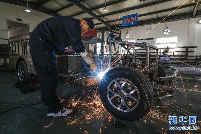 10月14日,在位于河南省信陽市平橋區(qū)的信陽航空服務學校汽修車間,學生王慶柄在焊接制作一輛“老爺車”。這種電瓶式“老爺車”被廣泛應用于旅游開發(fā)、婚慶等行業(yè)。自2008年實施職教攻堅計劃和與教育部共建國家職教改革試驗區(qū)以來,河南省將職業(yè)教育放到強化中原崛起河南振興、增強區(qū)域競爭力的高度來謀劃,積極推進職業(yè)教育改革發(fā)展,推進全民技能振興工程的實施,并取得了階段性成果。截至2014年底,河南共有職業(yè)院校962所,職業(yè)院校在校生210萬人,高職、中職畢業(yè)生就業(yè)率分別保持在90%和96%以上。全省職業(yè)院校累計培養(yǎng)畢業(yè)生500多萬人,開展職業(yè)培訓2400多萬人次,這些技術(shù)技能型人才已經(jīng)成為產(chǎn)業(yè)大軍的主要來源。(新華社記者 沈伯韓攝)