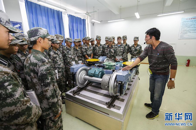 在鄭州城軌交通中等專業(yè)學校城市軌道交通實驗實訓中心,谷志鵬老師(右一)為運營管理專業(yè)的中職學生講解地鐵車輛轉(zhuǎn)向架的結(jié)構(gòu)和作用(10月13日攝)。自2008年實施職教攻堅計劃和與教育部共建國家職教改革試驗區(qū)以來,河南省將職業(yè)教育放到強化中原崛起河南振興、增強區(qū)域競爭力的高度來謀劃,積極推進職業(yè)教育改革發(fā)展,推進全民技能振興工程的實施,并取得了階段性成果。截至2014年底,河南共有職業(yè)院校962所,職業(yè)院校在校生210萬人,高職、中職畢業(yè)生就業(yè)率分別保持在90%和96%以上。全省職業(yè)院校累計培養(yǎng)畢業(yè)生500多萬人,開展職業(yè)培訓2400多萬人次,這些技術(shù)技能型人才已經(jīng)成為產(chǎn)業(yè)大軍的主要來源。(新華社記者 沈伯韓攝)