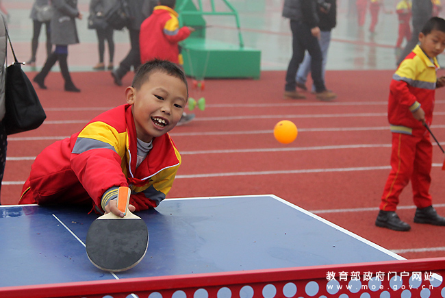 完備的運(yùn)動(dòng)器材為學(xué)生們提供了形式多樣的鍛煉方式,乒乓球是操場(chǎng)上學(xué)生們的寵兒。(樊世剛/攝 王唯/文)