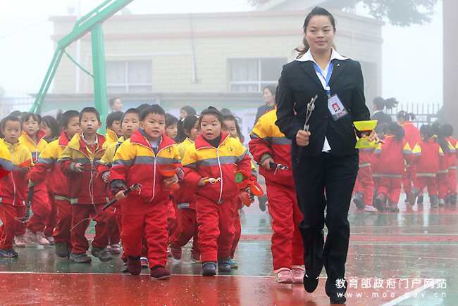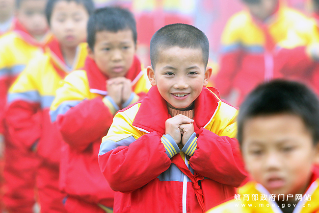 永和小學(xué)大多數(shù)學(xué)生都來(lái)自貧困的農(nóng)村,他們的學(xué)費(fèi)和生活費(fèi)大多由國(guó)家和慈善團(tuán)體資助,學(xué)校為了讓學(xué)生學(xué)會(huì)感恩,在每個(gè)課間操安排學(xué)生集體做感恩操。(樊世剛/攝 王唯/文)
