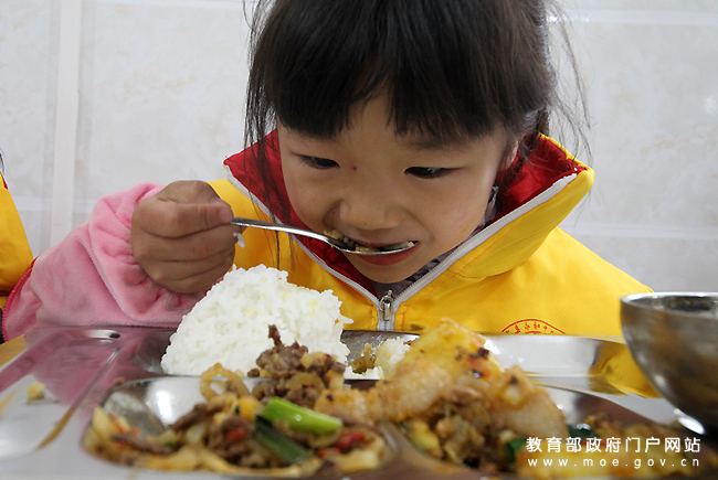 很多學(xué)生都表示學(xué)校做的飯菜比家里做得好吃,他們很喜歡學(xué)校的營(yíng)養(yǎng)餐。(樊世剛/攝 王唯/文)