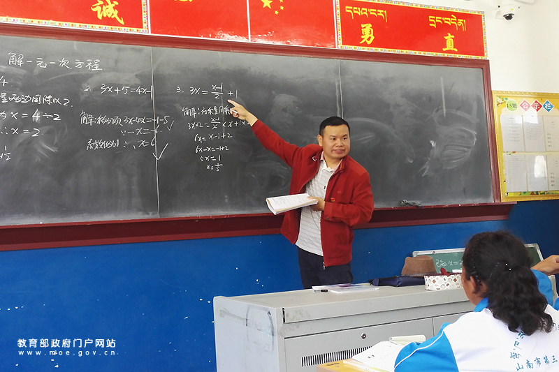 在山南市第三高級中學高一(26)班教室內(nèi),湖南援藏教師蘇春生正在給藏族學生上數(shù)學課。(忠建豐/攝)