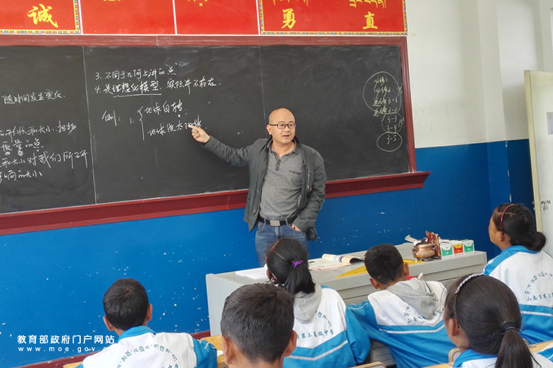 在山南市第三高級中學高一(31)班教室內(nèi),湖南援藏教師雷力正在給藏族學生上物理課。(忠建豐/攝)