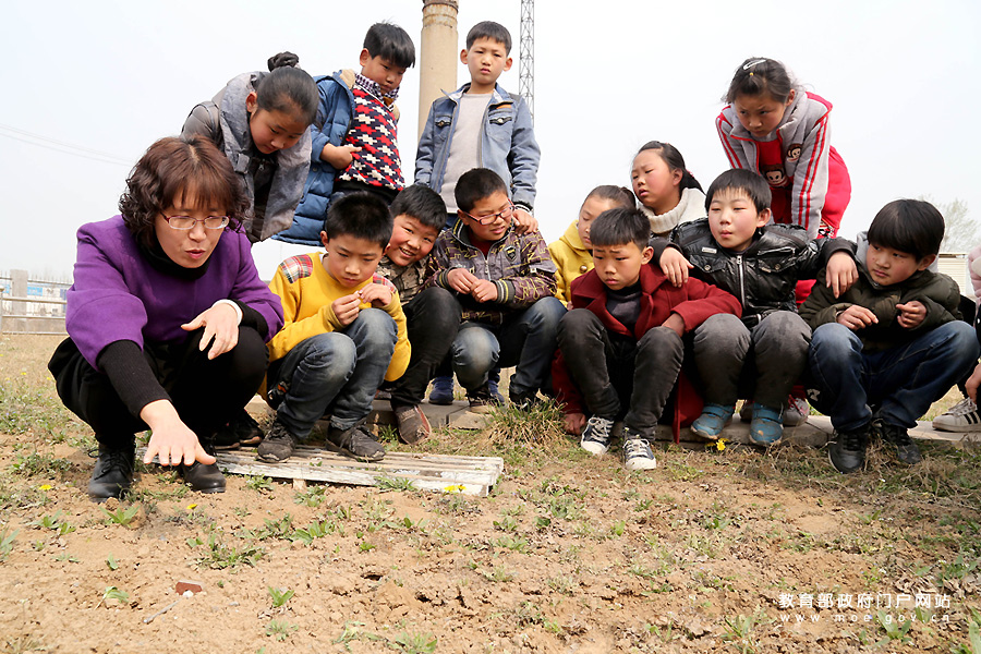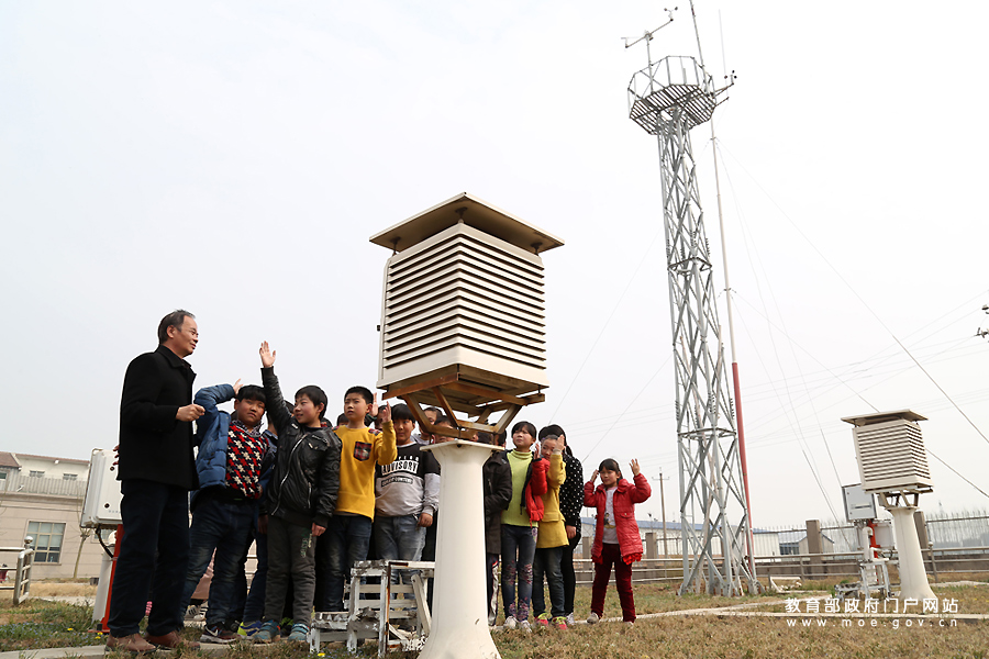 河南省溫縣氣象局工作人員為小學(xué)生講解百葉箱的作用。(徐宏星/攝)