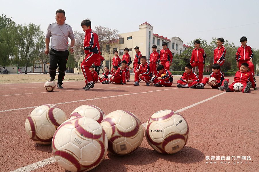1/0近年來(lái),河南溫縣城鄉(xiāng)中小學(xué)涌現(xiàn)出一批足球特色學(xué)校,學(xué)校通過(guò)培養(yǎng)足球師資,利用體育課、課外活動(dòng)開(kāi)展足球教學(xué)和足球比賽等,增強(qiáng)中小學(xué)生參加足球運(yùn)動(dòng)的積極性。今年,足球項(xiàng)目將納入該縣中招考試項(xiàng)目。(徐宏星/攝)
