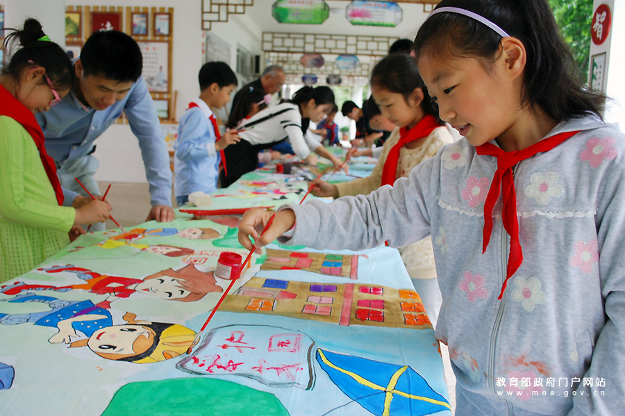 在6月5日世界環(huán)境日即將來臨之際,江蘇省鎮(zhèn)江市中華路小學(xué)聯(lián)合江蘇大學(xué)和金山街道迎江路中心社區(qū)志愿者,開展“攜手繪長卷,迎接環(huán)境日”活動,志愿者帶著小朋友一起在長卷上描繪他們心中的綠色家園,倡導(dǎo)低碳環(huán)保生活方式。(石玉成 周德帥/攝)