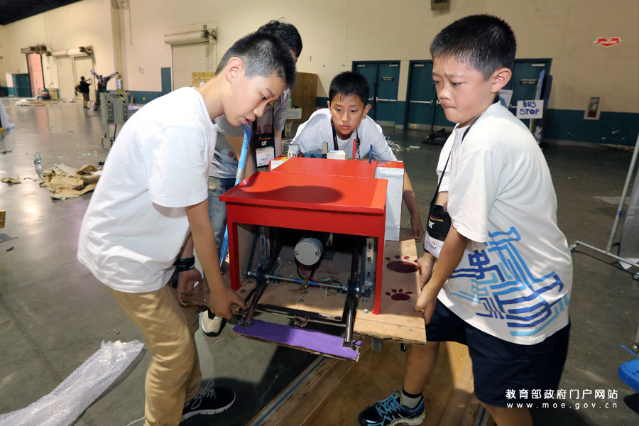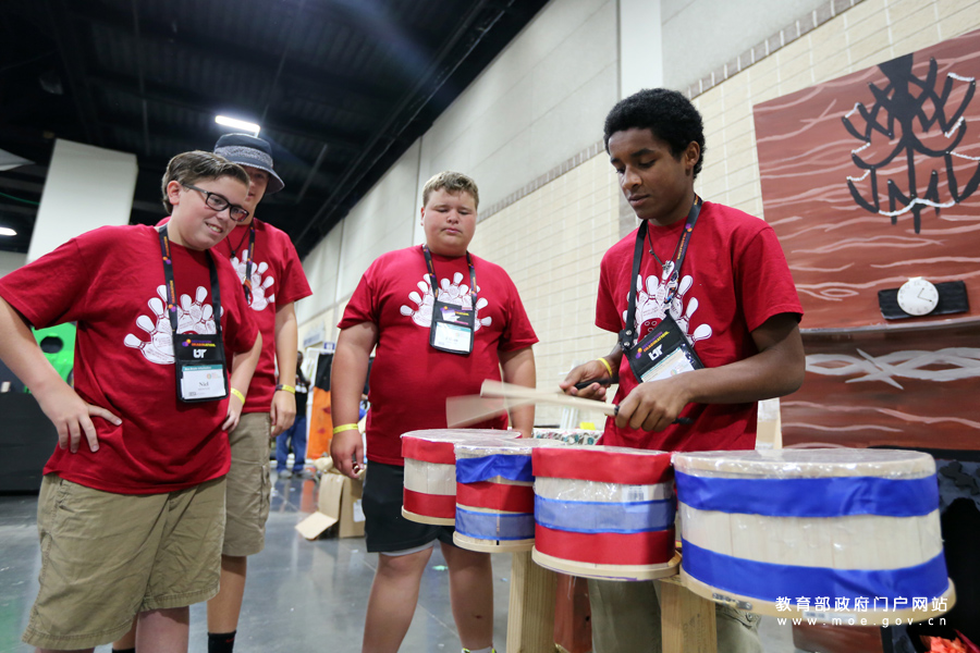 1/0美國田納西州諾克斯維爾市田納西大學體育館舉行了2016年度DI全球青少年創(chuàng)意大賽頒獎儀式。DI是英文縮寫,翻譯為中文就是“目的地想象”的意思,比賽要求每個參賽隊在8分鐘時間內現(xiàn)場演繹一個原創(chuàng)故事,所用道具不僅要由隊員手工制作,還必須具有一定的科技含量。該比賽旨在激發(fā)青少年的創(chuàng)造性思維,培養(yǎng)解決問題的能力和團隊合作精神。圖為北京八一中學參賽選手的“八爪神獸”道具一出場就技驚四座,以高出第二名20多分的成績獲得該賽項第一名。(樊世剛/攝)