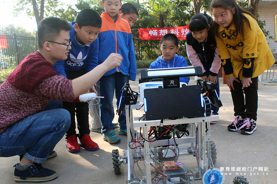 志愿者在為小朋友演示講解極速渦流智能車的功能。近日,江蘇科技大學(xué)志愿者走進鎮(zhèn)江市潤州工業(yè)園區(qū)鲇魚套村,開展“娃娃學(xué)科普,快樂度周末”活動,志愿者為小朋友演示講解慧魚模型、智能車和機器人等科普知識,激發(fā)孩子們學(xué)科學(xué)、用科學(xué)的興趣,度過快樂的科普周末。(石玉成 周志輝/攝)