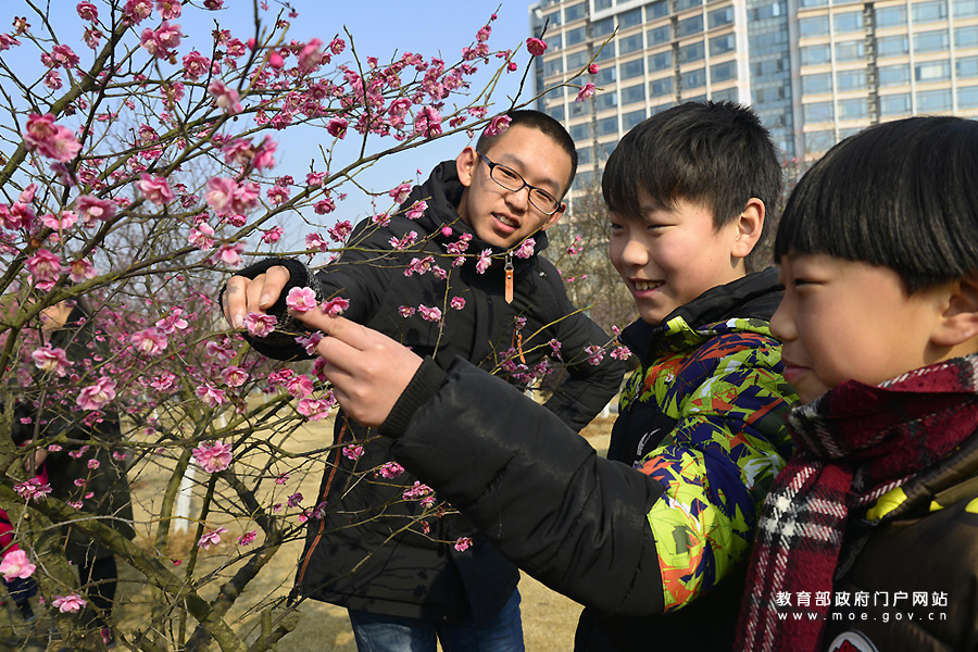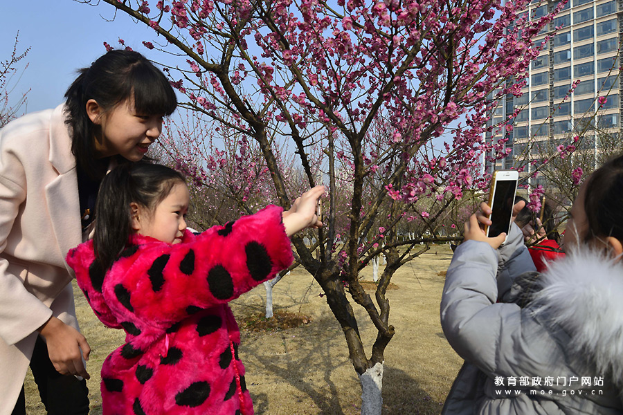 2月25日,江蘇大學(xué)志愿者帶著鎮(zhèn)江市潤(rùn)州區(qū)金山街道紅光社區(qū)的小朋友走進(jìn)該校的梅花園,開(kāi)心觀賞盛開(kāi)的梅花,指導(dǎo)孩子們用手機(jī)拍攝梅花,在快樂(lè)體驗(yàn)中感受大自然的美麗。(石玉成 劉浩/攝)
