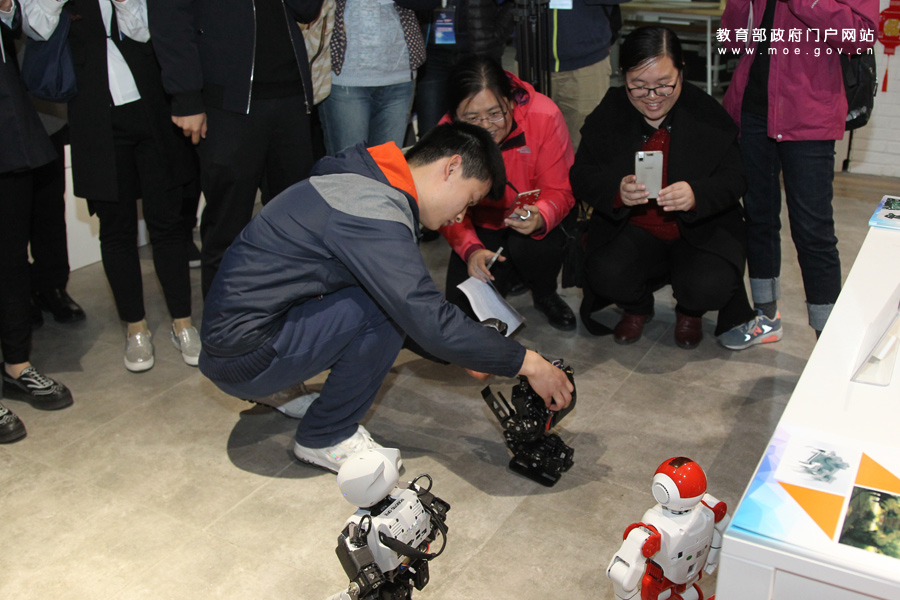 1/0采訪團(tuán)觀看機(jī)器人。(于淼/文 樊世剛/攝)