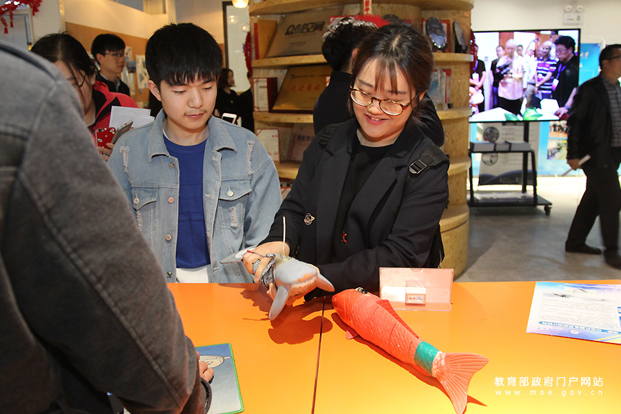 1/0“海豚”仿生機(jī)器魚(yú)是利用海豚在水下仿生領(lǐng)域卓越的性能,設(shè)計(jì)基于背腹式運(yùn)動(dòng)的機(jī)器海豚。除了可以實(shí)現(xiàn)海豚的背腹式運(yùn)動(dòng)和轉(zhuǎn)彎,還可以實(shí)現(xiàn)一般機(jī)器魚(yú)很難做到的上浮、下潛、翻滾動(dòng)作。(于淼/文 樊世剛/攝)