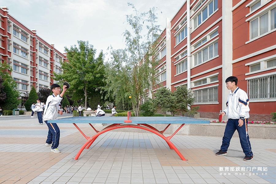 寧夏六盤山高級中學(xué)的學(xué)生在校園中打乒乓球。(張勁松/攝 趙奕/文)