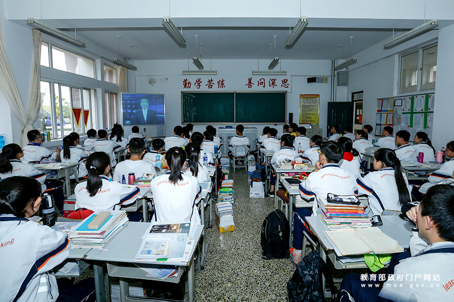 寧夏六盤山高級中學(xué)的學(xué)生在教室內(nèi)一同收看新聞聯(lián)播。(張勁松/攝 趙奕/文)