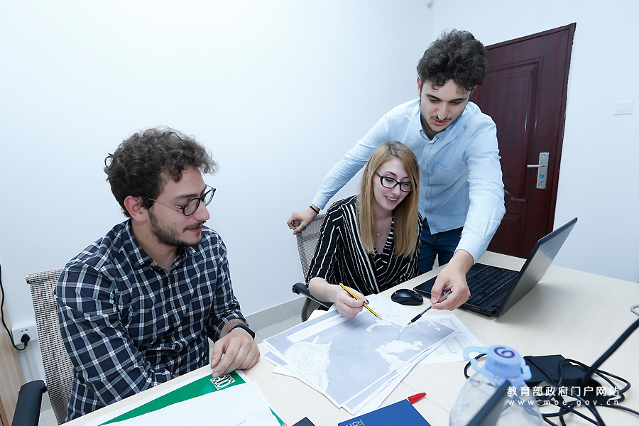 意大利籍來華留學(xué)生正在進行課題討論。為迎接黨的十九大,教育部新聞辦組織中央媒體采訪團深入地方,用圖文記錄十八大以來教育改革發(fā)展的新進展。5月16日,采訪團一行走進福建省福州市,圍繞土木工程教育服務(wù)“一帶一路”建設(shè)和福建省高校對外合作辦學(xué)的特色進行采訪報道。(張勁松/攝 李娜/文)