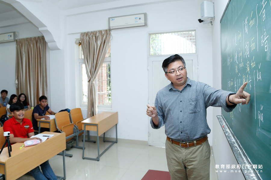 華僑大學(xué)教師在給“一帶一路”沿線國家政府官員講授中文。為迎接黨的十九大,教育部新聞辦組織中央媒體采訪團(tuán)深入地方,用圖文記錄十八大以來教育改革發(fā)展的新進(jìn)展。5月18日,采訪團(tuán)一行走進(jìn)華僑大學(xué)華文學(xué)院,圍繞“一帶一路”沿線國家“外國政府官員中文學(xué)習(xí)班”“安哥拉政府青年科技人才班”等戰(zhàn)略合作人才培養(yǎng)成果進(jìn)行采訪報道。(張勁松/攝 李娜/文)