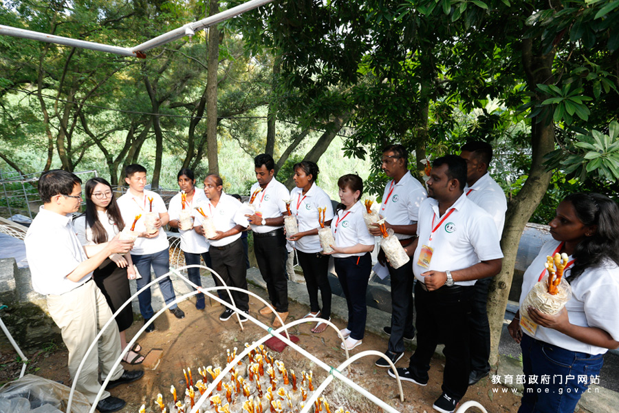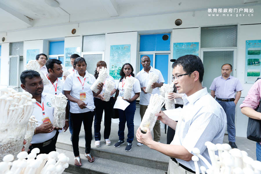 1/0福建農(nóng)林大學(xué)國家菌草工程技術(shù)研究中心培訓(xùn)部長林輝向培訓(xùn)班學(xué)生介紹蘑菇采收情況。為迎接黨的十九大,教育部新聞辦組織中央媒體采訪團(tuán)深入地方,用圖文記錄十八大以來教育改革發(fā)展的新進(jìn)展。5月17日,采訪團(tuán)一行走進(jìn)福建農(nóng)林大學(xué),圍繞“一帶一路”沿線國家菌草技術(shù)援外項(xiàng)目情況及海外學(xué)院國際合作辦學(xué)的文化交流情況進(jìn)行采訪報道。(張勁松/攝 李娜/文)