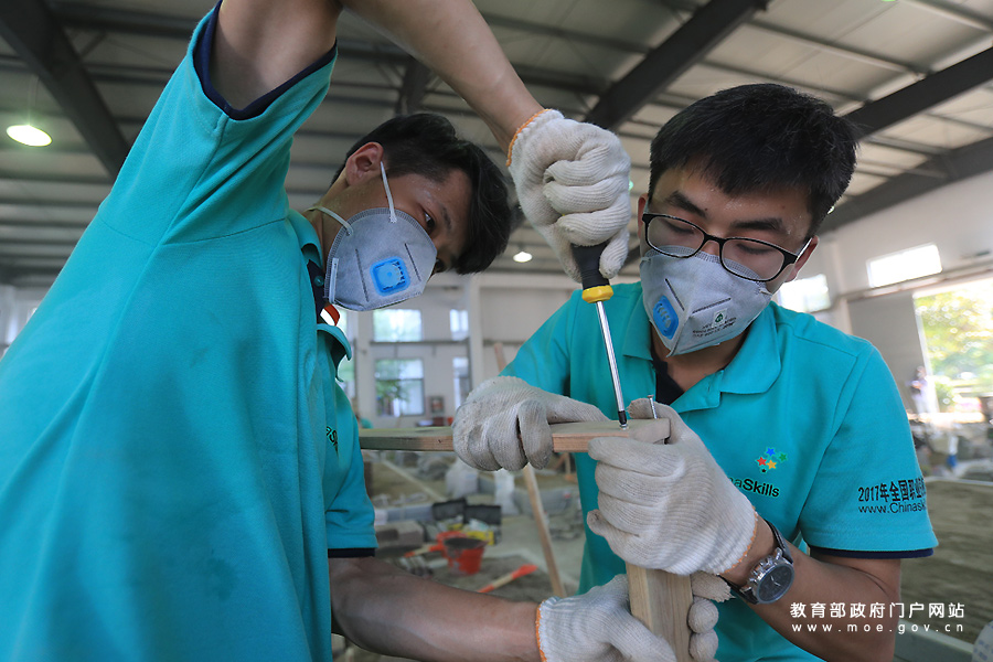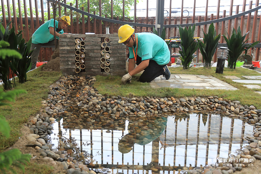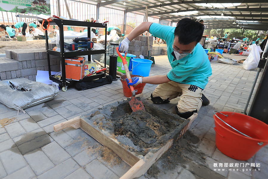 1/0北京農(nóng)學(xué)院代表隊(duì)選手陳嘉婕揮錘鋪磚的認(rèn)真勁兒吸引保安好奇的目光——沒見過(guò)姑娘當(dāng)泥瓦匠。5月22至23日,2017年全國(guó)職業(yè)院校技能大賽中(高)職組農(nóng)業(yè)類園林景觀設(shè)計(jì)賽項(xiàng)在江蘇農(nóng)林職業(yè)技術(shù)學(xué)院開賽,吸引了來(lái)自全國(guó)31個(gè)省市自治區(qū)的50多個(gè)代表隊(duì)參與。參賽選手要在兩天時(shí)間內(nèi)對(duì)園林景觀進(jìn)行景墻砌筑、水景施工、植物種植、園路鋪裝等造園實(shí)踐。這次比賽首次采用世界技能大賽標(biāo)準(zhǔn),實(shí)現(xiàn)由“紙上談兵(電腦設(shè)計(jì))”到現(xiàn)場(chǎng)實(shí)景造園的轉(zhuǎn)變。(張學(xué)軍/攝)