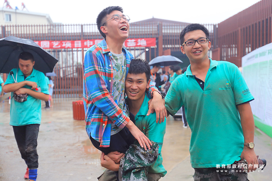 1/0參賽選手在鋪設(shè)草坪。(張學(xué)軍/攝)