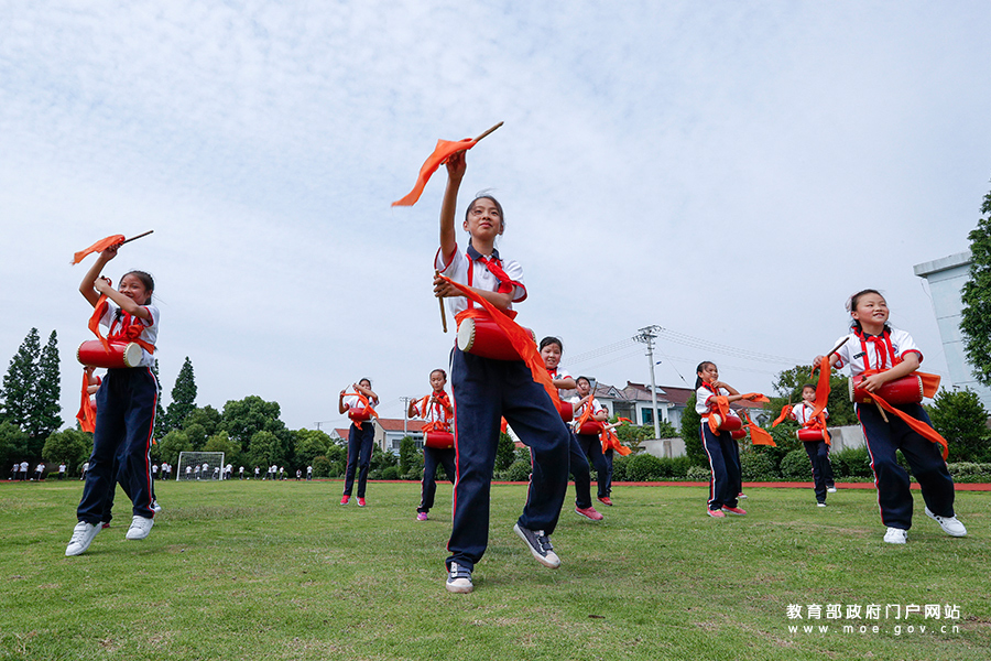 潭北小學(xué)少年宮腰鼓隊(duì)的學(xué)生在進(jìn)行腰鼓訓(xùn)練。(張勁松/攝 趙奕/文)