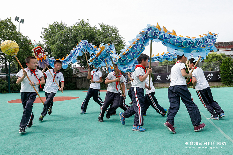 潭北小學(xué)少年宮舞龍隊(duì)的學(xué)生在進(jìn)行舞龍訓(xùn)練。(張勁松/攝 趙奕/文)