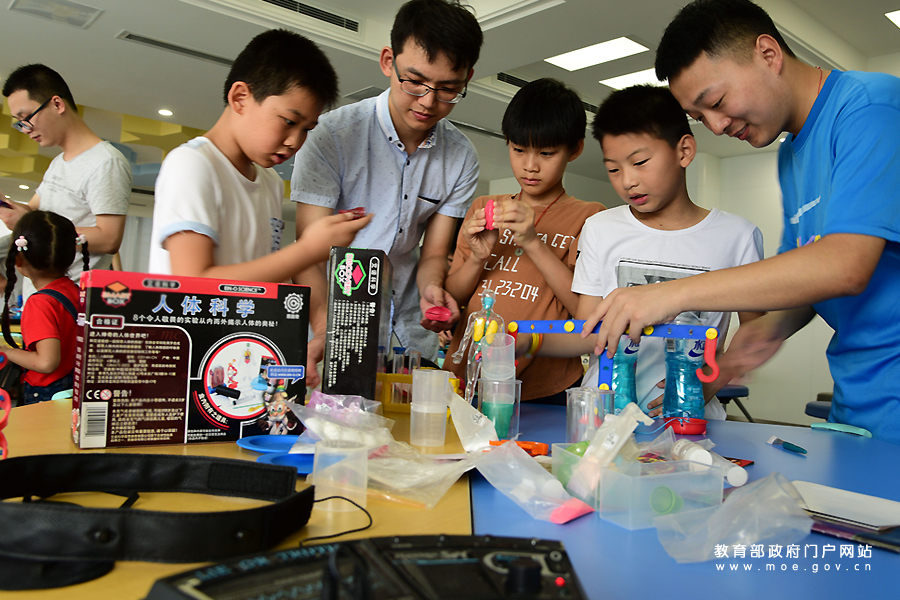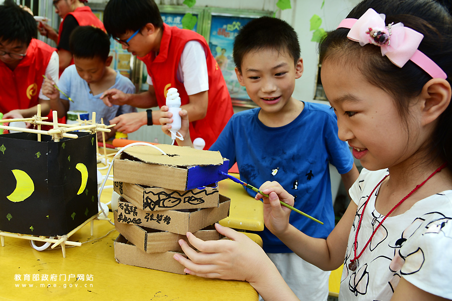 1/0志愿者在指導(dǎo)小朋友用廢舊材料制作創(chuàng)意節(jié)能臺(tái)燈。8月10日,江蘇大學(xué)志愿者來(lái)到鎮(zhèn)江市金山街道風(fēng)車山社區(qū),開(kāi)展“制作創(chuàng)意節(jié)能燈,低碳環(huán)保伴我行”活動(dòng),指導(dǎo)小朋友將舊的紙板、竹筷、廣告紙、玻璃燈罩等“變廢為寶”,制作各種類型的創(chuàng)意環(huán)保節(jié)能燈,增強(qiáng)孩子們的環(huán)保和節(jié)約意識(shí)。(石玉成 肖怡晨/攝)