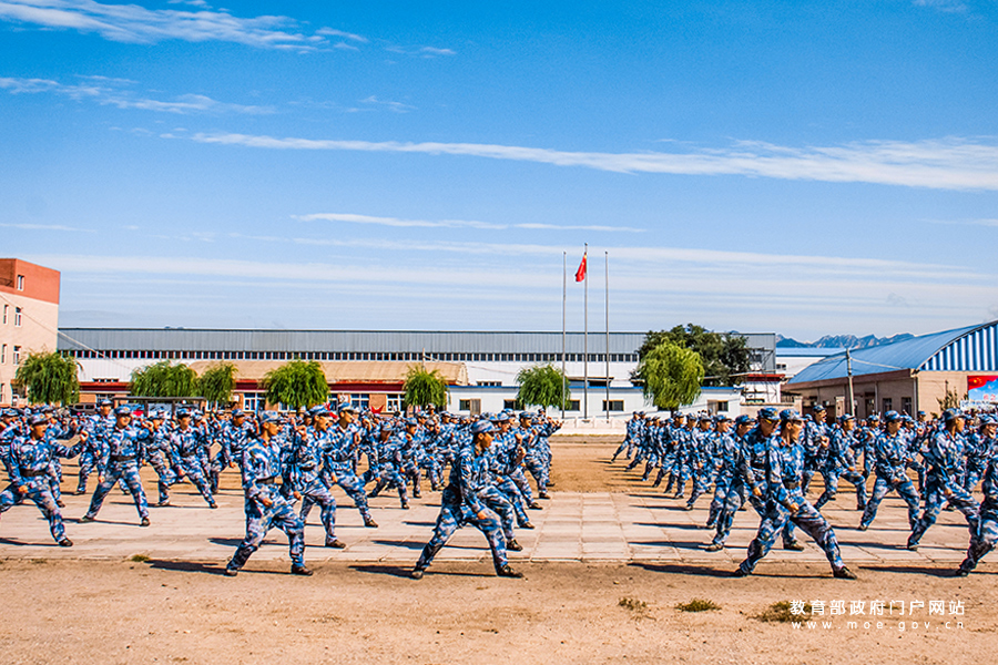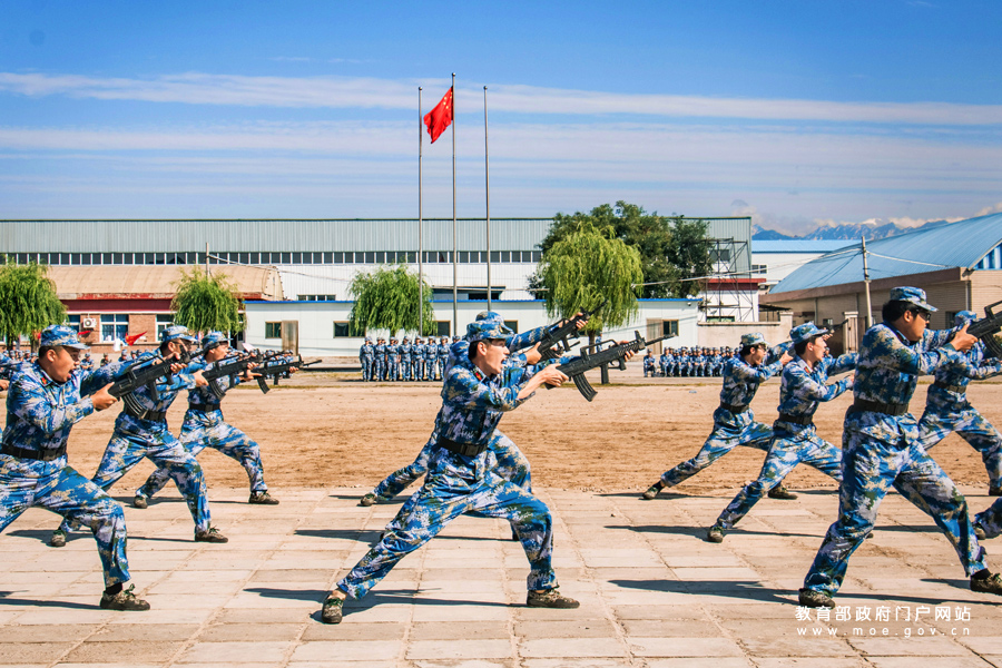 1/0“戰(zhàn)之必勝,斗志滿懷”——北京大學軍訓團軍體拳表演。(程佳路/攝)