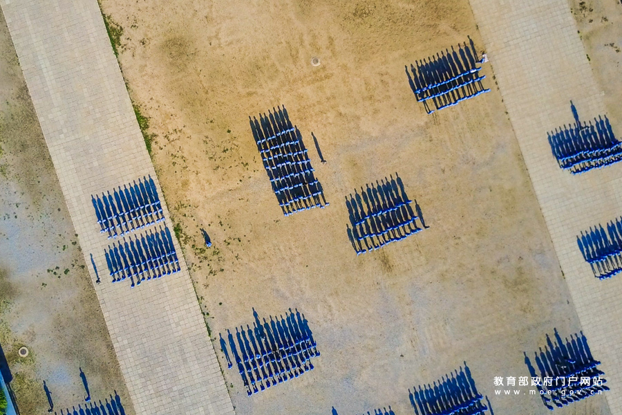 1/0“精神矍鑠,步履齊整”——北京大學軍訓團日常訓練航拍。(張浩天/攝)