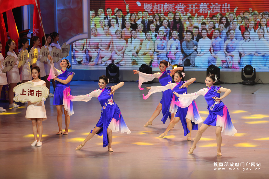 上海市學(xué)生代表以20秒舞蹈演出的方式展現(xiàn)本市文化特色。(上海教育報刊總社記者 陸嘉輝/攝 李佩 姚振/文)