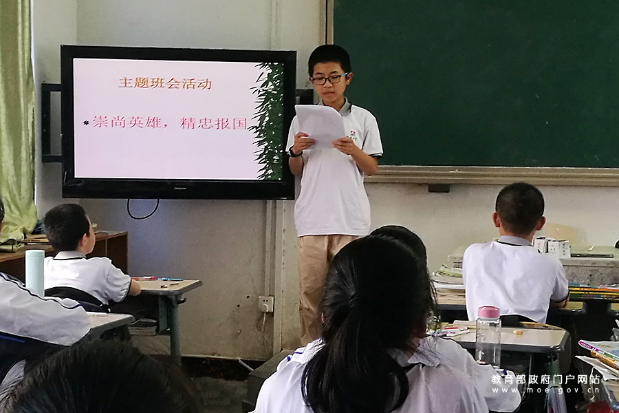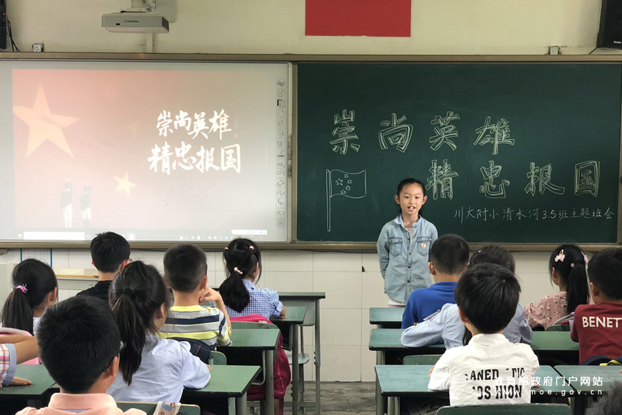 1/0四川大學(xué)附屬實(shí)驗(yàn)小學(xué)清水河分校組織學(xué)生開(kāi)展“崇尚英雄 精忠報(bào)國(guó)”主題班會(huì)活動(dòng),圖為學(xué)生正在收看“崇尚英雄 精忠報(bào)國(guó)”宣傳片。為深入學(xué)習(xí)貫徹習(xí)近平新時(shí)代中國(guó)特色社會(huì)主義思想和黨的十九大精神,貫徹落實(shí)《中華人民共和國(guó)英雄烈士保護(hù)法》,在廣大中小學(xué)生中傳承和弘揚(yáng)英雄烈士精神、愛(ài)國(guó)主義精神,近日,教育部印發(fā)關(guān)于在中小學(xué)校開(kāi)展“崇尚英雄 精忠報(bào)國(guó)”主題班會(huì)活動(dòng)的通知,請(qǐng)各地中小學(xué)組織開(kāi)展一次以“崇尚英雄 精忠報(bào)國(guó)”為主題的班會(huì)活動(dòng)。(四川大學(xué)附屬實(shí)驗(yàn)小學(xué)清水河分校/供)