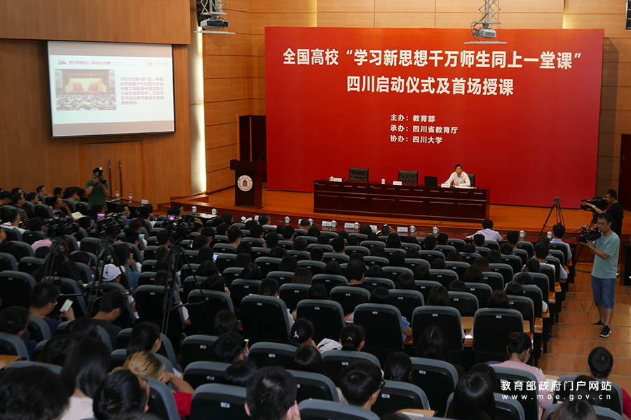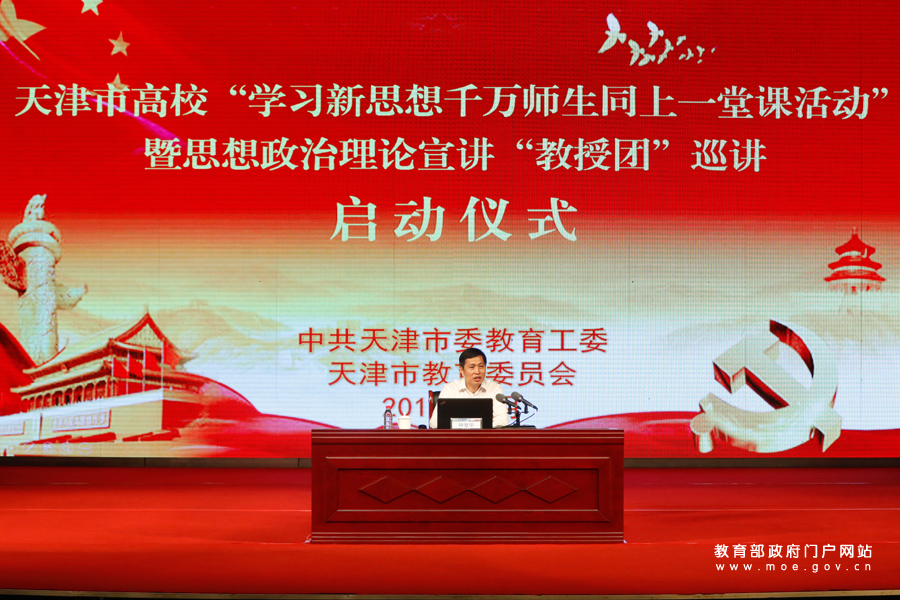 1/0中國工程院院士、天津大學(xué)校長鐘登華教授作了題為“新時代青年的擔(dān)當(dāng)”的主題報告,正式全面啟動“學(xué)習(xí)新思想千萬師生同上一堂課活動”和思想政治理論宣講“教授團”巡講活動。為進一步深入學(xué)習(xí)貫徹習(xí)近平新時代中國特色社會主義思想,落實《教育部辦公廳關(guān)于組織開展“學(xué)習(xí)新思想千萬師生同上一堂課活動”的通知》要求,天津市教育兩委近日在天津大學(xué)舉辦了“學(xué)習(xí)新思想千萬師生同上一堂課活動”暨思政理論宣講“教授團”巡講啟動儀式,天津市委教育工委、天津市教委有關(guān)負責(zé)同志和全市各高校師生代表1200余人參加了活動。