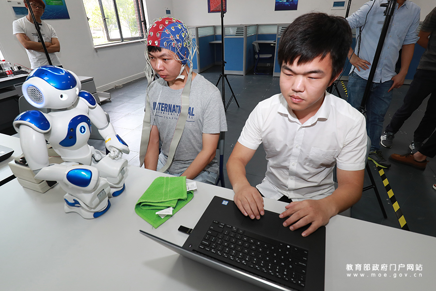 1/0浙江工業(yè)大學(xué)計(jì)算機(jī)科學(xué)與技術(shù)學(xué)院(軟件學(xué)院)學(xué)生朱文成運(yùn)用人工智能算法+機(jī)器視覺重建人體骨骼模型與機(jī)器人關(guān)節(jié)結(jié)構(gòu)模型,實(shí)時(shí)控制協(xié)作機(jī)器人。為貫徹落實(shí)黨的十九大精神,聚焦教育系統(tǒng)長期以來的熱點(diǎn)難點(diǎn)問題,6月7日 ,由教育部新聞辦組織的教育奮進(jìn)之筆“1+1”系列發(fā)布采訪活動(dòng)走進(jìn)浙江,就高等學(xué)校人工智能創(chuàng)新行動(dòng)計(jì)劃有關(guān)工作開展情況走訪了浙江工業(yè)大學(xué)。(樊世剛/攝 傅鴻洲/文)