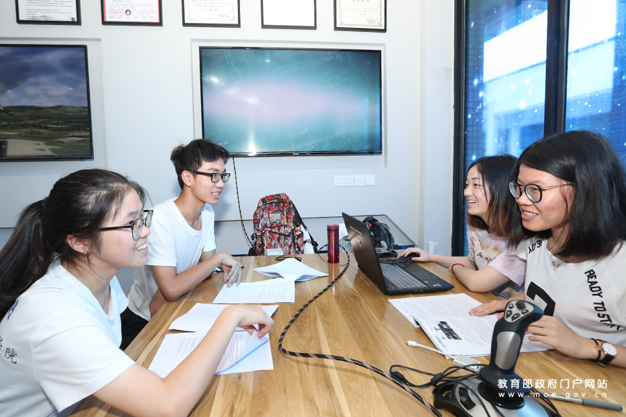 在四川大學(xué)空天飛行器創(chuàng)意設(shè)計與體驗中心,空天科學(xué)與工程學(xué)院2016-2017 級學(xué)生正在研討空中交通管制課題。(張勁松/攝 忠建豐/文)