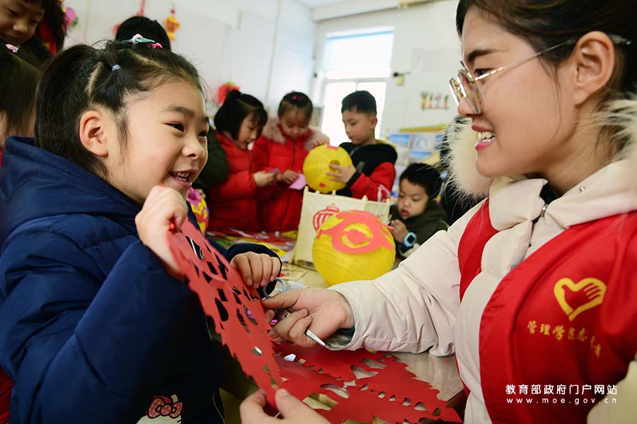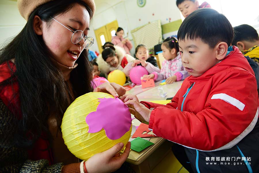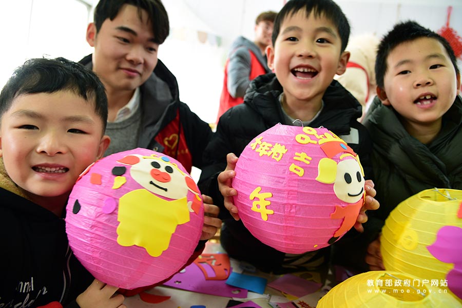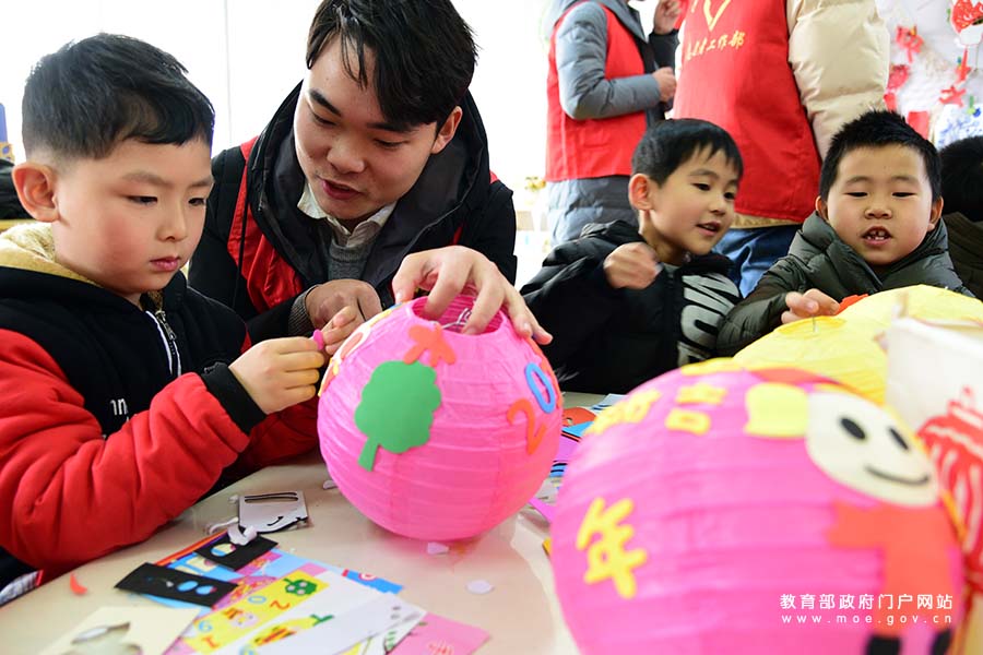 1/0江蘇大學(xué)志愿者在指導(dǎo)鎮(zhèn)江市解放路幼兒園的小朋友制作年俗主題手工燈籠。近日,江蘇省鎮(zhèn)江市解放路幼兒園聯(lián)合江蘇大學(xué)志愿者開(kāi)展“萌娃學(xué)民俗迎新年”活動(dòng),志愿者指導(dǎo)小朋友以年俗為內(nèi)容制作手工燈籠、剪窗花、描“福”字,了解春節(jié)民俗,感受傳統(tǒng)文化,喜迎農(nóng)歷豬年的到來(lái)。(石玉成/攝)